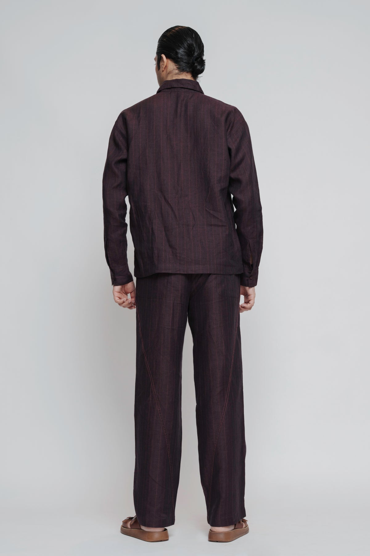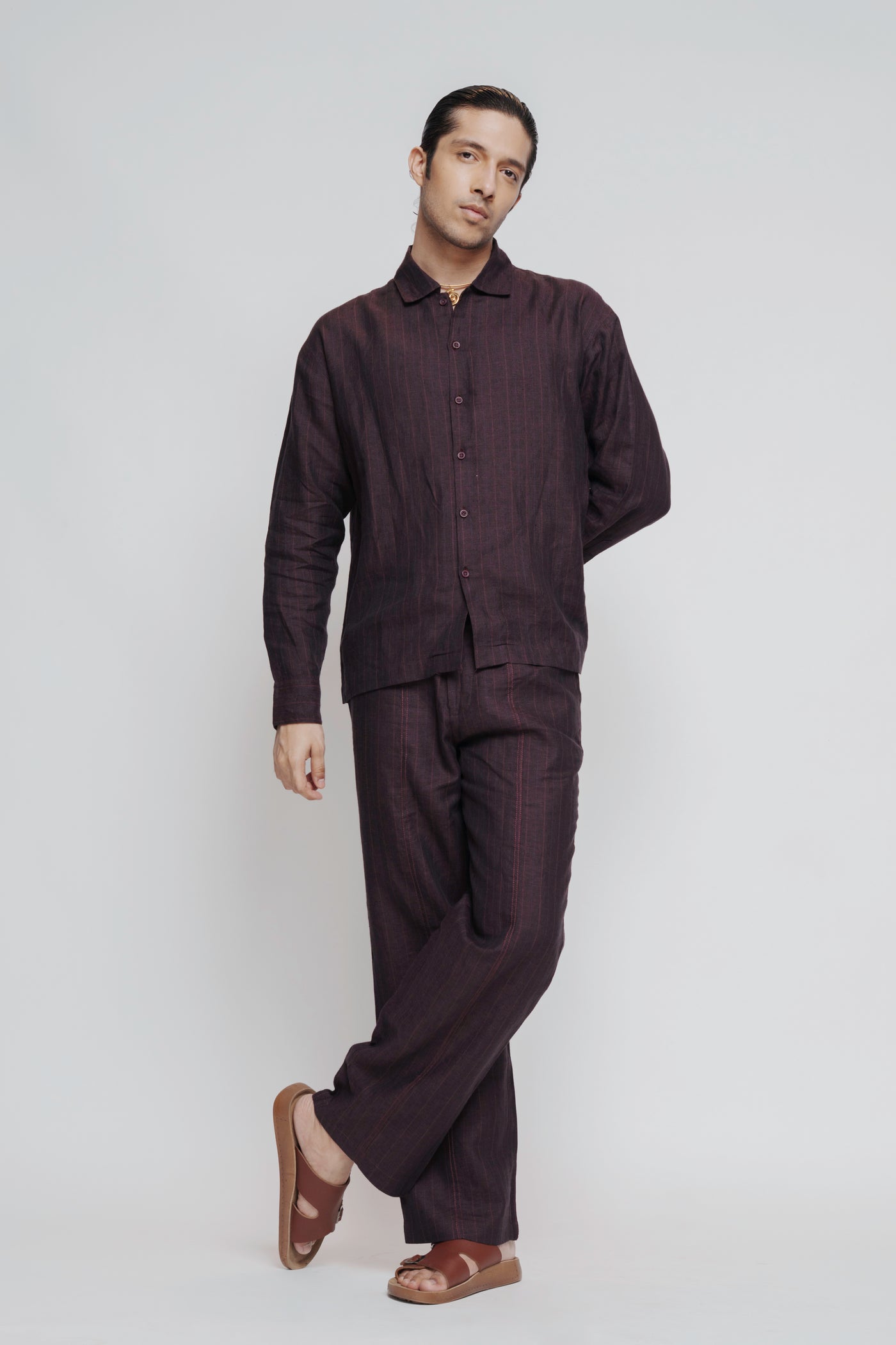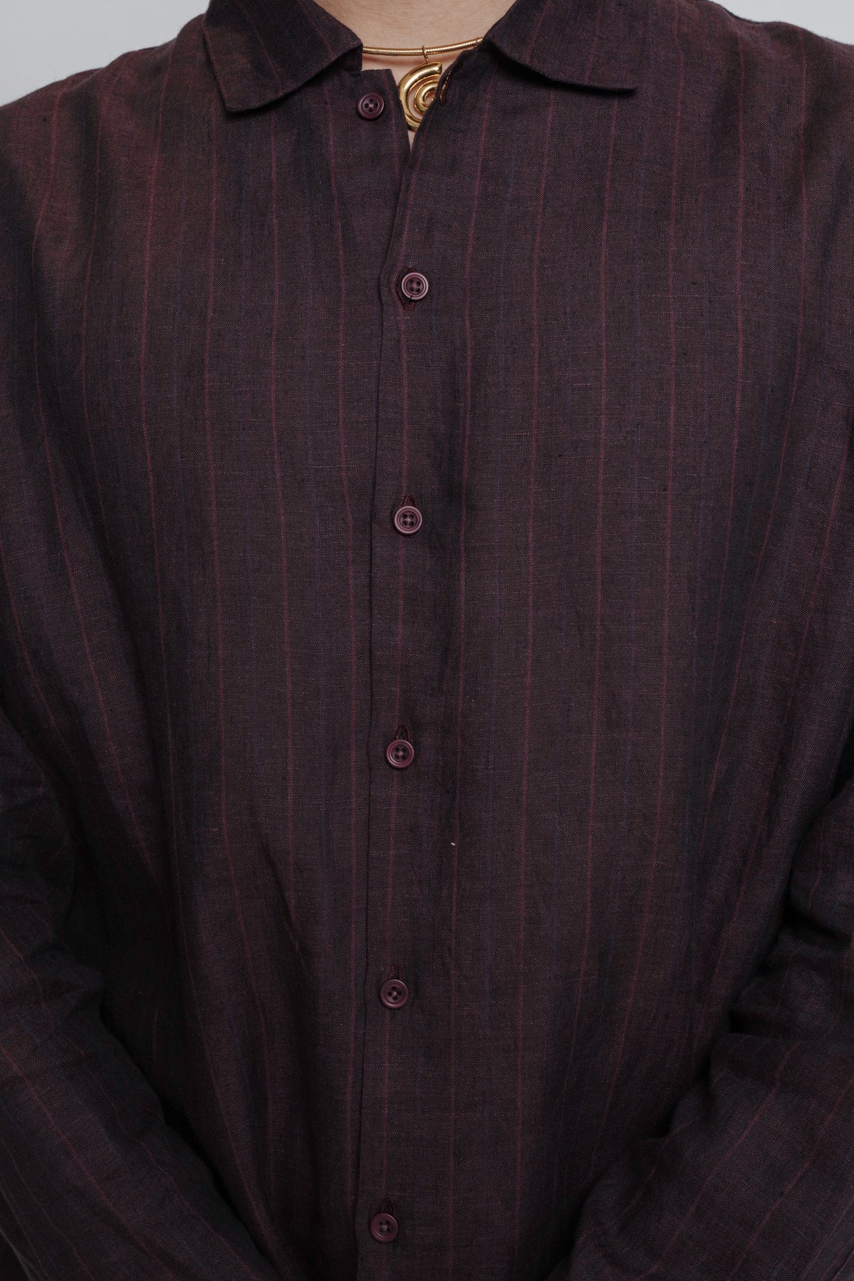 Rich in plum hue crafted in linen fabric, this shirt blends structure with softness. the shirt features a clean button down front and relaxed fit.