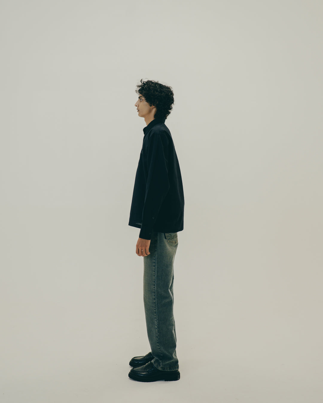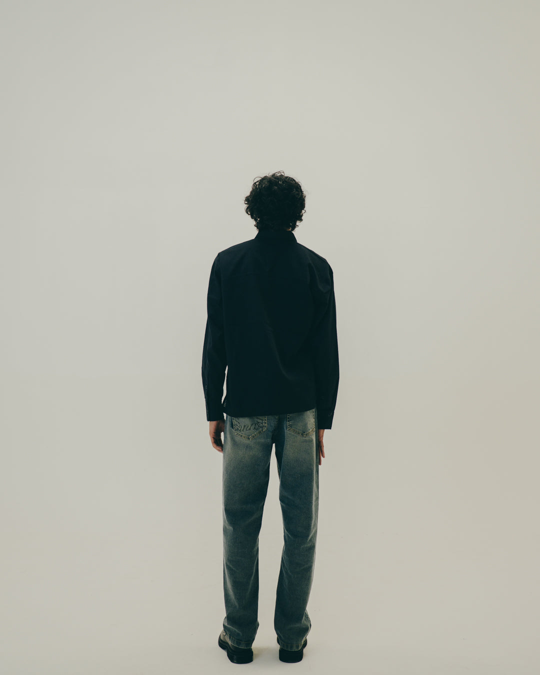 A subtle statement piece, this black shirt features fine horizontal stips and a minimal tonal floral embroidery across the chest. The relax fit makes it versatile for both day & night looks.